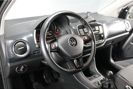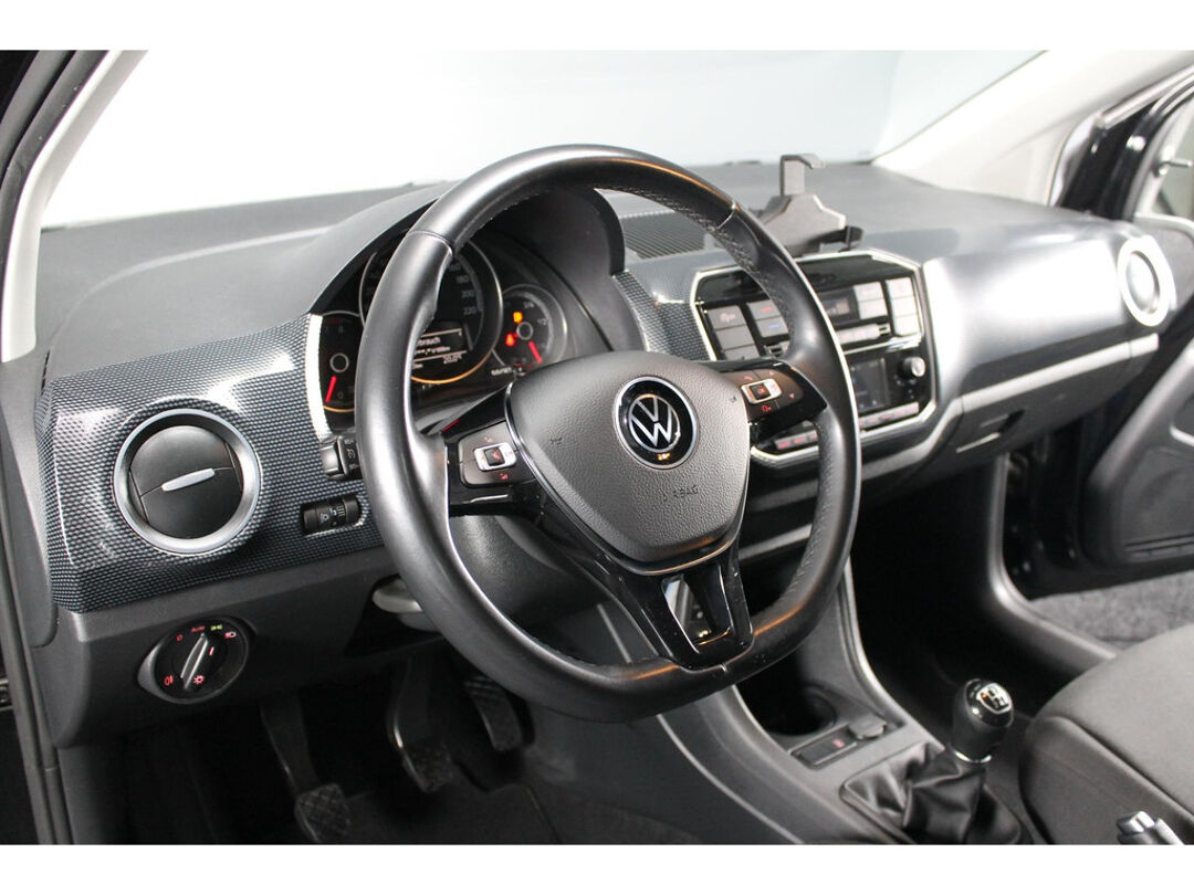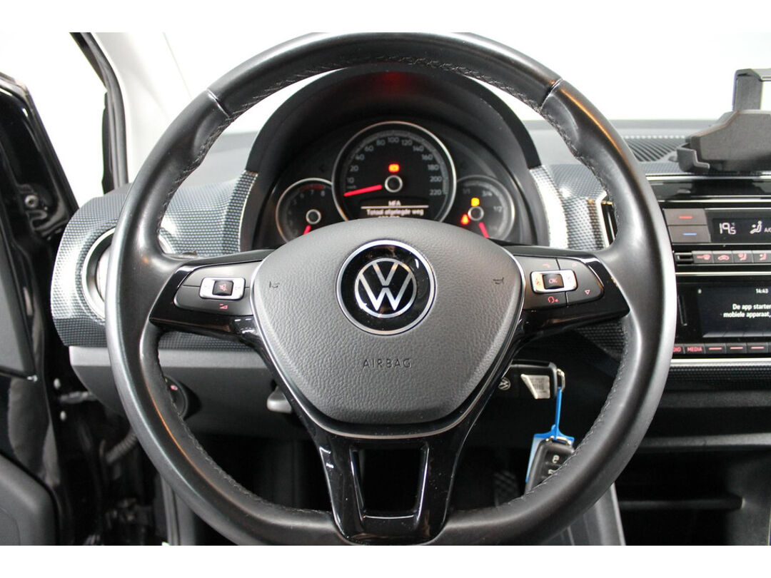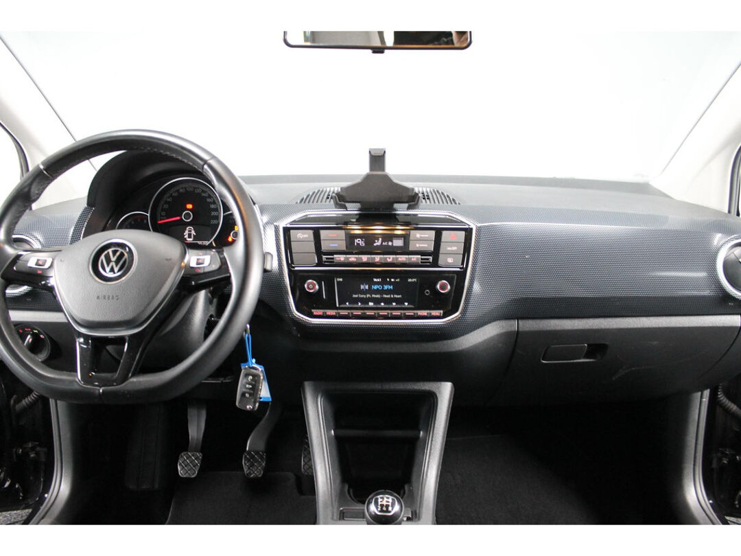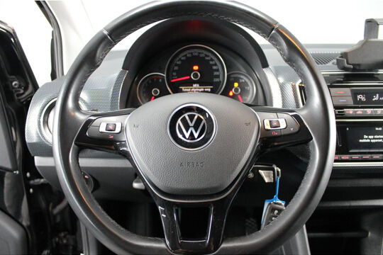Zeer mooi en volledig uitgevoerde Volkswagen UP!, in het black on black. Uitgevoerd met onder andere een achteruitrijcamera, cruise control, climate control, telefoon integratie, parkeersensoren achter, lichtmetalen velgen en nog meer!