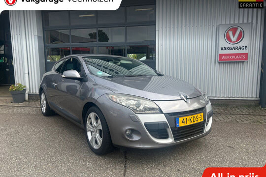 Nette Renault Megane coupé met lichtmetalen velgen, cruise control, climate control, parkeersensoren voor + achter, elektrische verstelbare spiegels en bi-xenon koplampen.