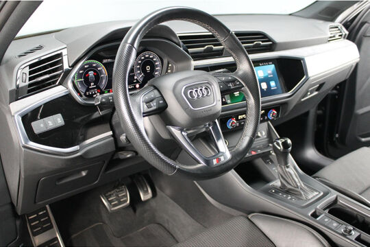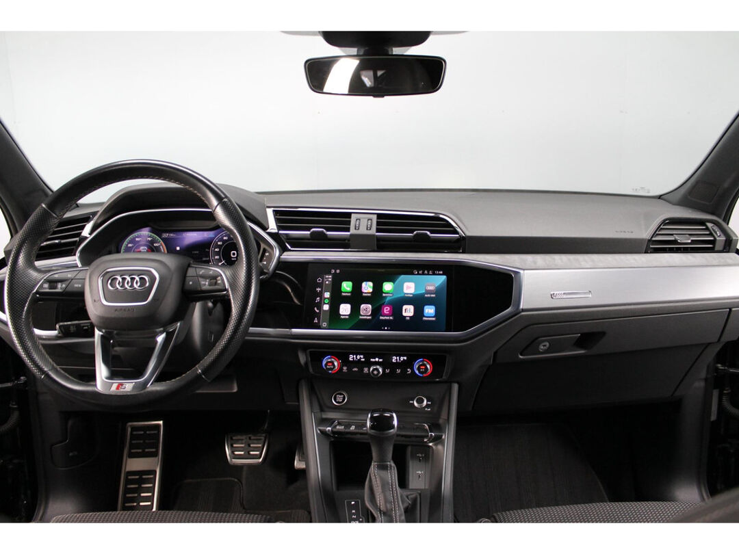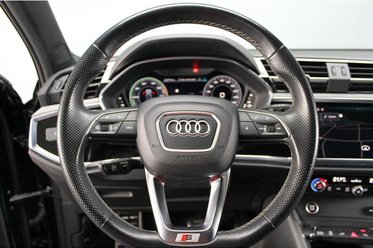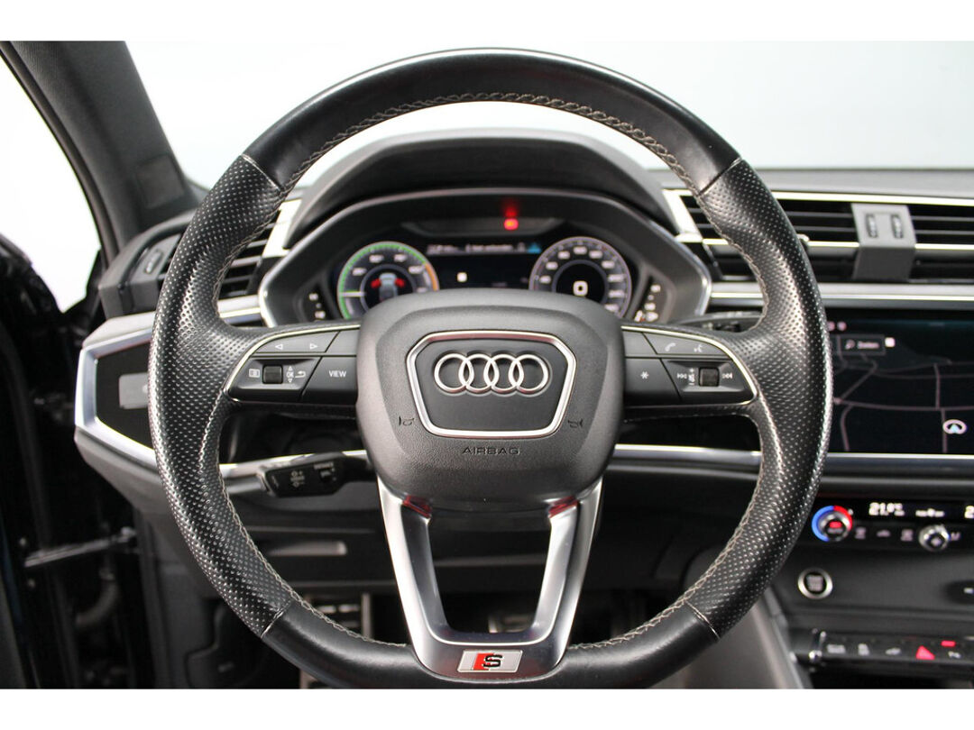 Zeer mooie Audi Q3 2x s-line uit 2021, dat betekent dus een s-line exterieur en een s-line interieur!! De auto is geleverd in het zwart metallic en bevat onder andere adaptive cruise control, achteruitrijcamera, Apple Carplay/Android Auto, matrix led verlichting, 20 inch audi sportvelgen en nog veel meer! Deze audi beschikt over een hybride aandrijflijn met 245pk en een elektrsiche actieradius van circa 45km.