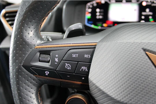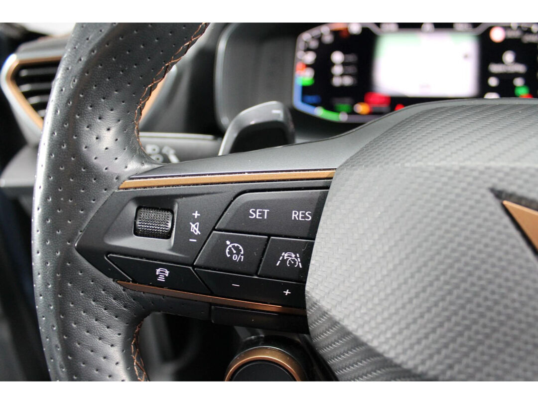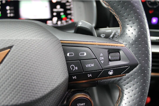 Zeer dikke en vol uitgevoerde Cupra Formentor VZ Copper Line in het Magnetic Tech Gray. De auto is uitgevoerd met onder andere een elektrisch uitklapbare trekhaak, Apple Carplay/Android Auto, 360 graden rondomzicht camera, elektrische bestuurdersstoel met geheugenfunctie, sportstuurwiel met rijmodi knop en start knop en nog veel meer!!!